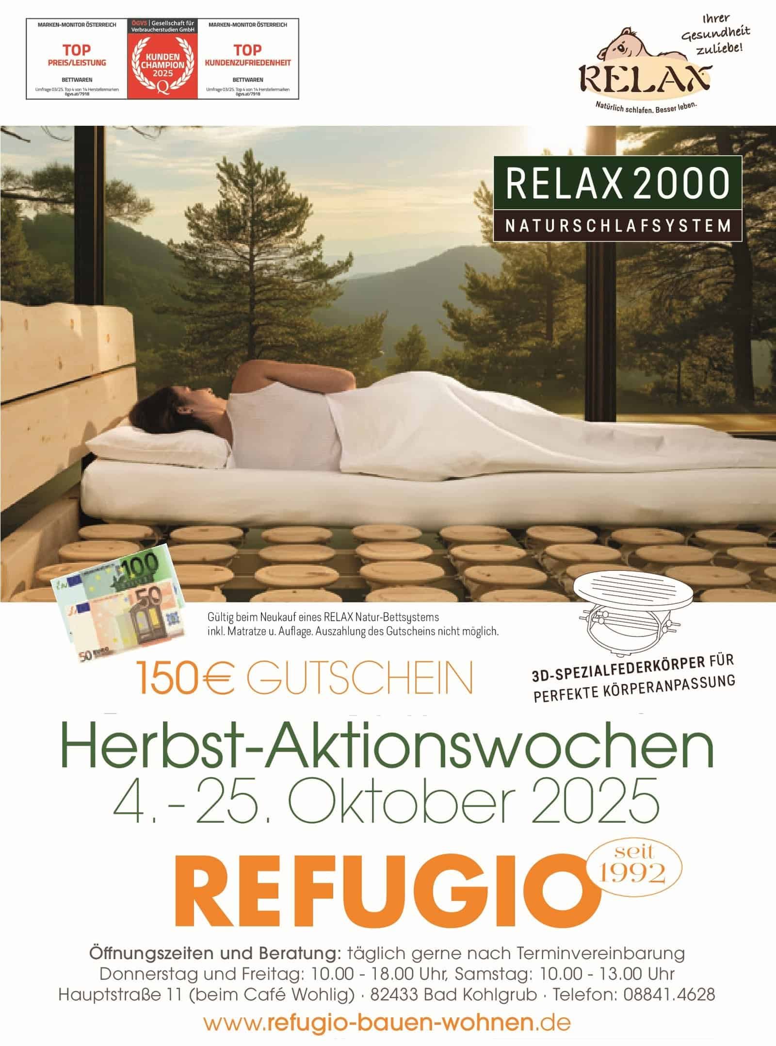 Mit 150 € Gutschein (gültig beim Neukauf eines RELAX Natur-Bettsystems inkl. Matraze und Auflage).